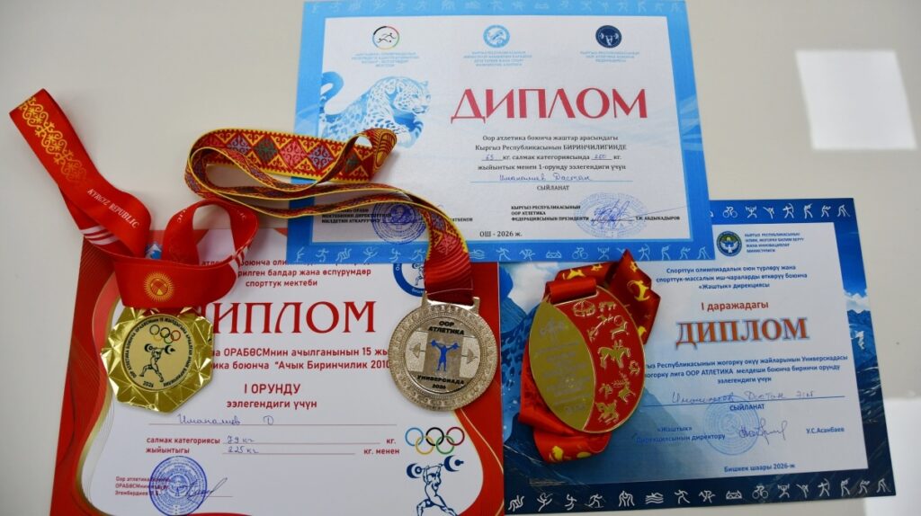 Улуттук университеттин 1-курс студенти Дастан Иманалиев 2026-жылдын 16-19-апрель күндөрү Ош шаарында өткөрүлгөн Кыргыз Республикасынын оор атлетика боюнча жаштар арасындагы биринчилигинде 65 кг салмак категориясы боюнча биринчи орунду ээлеп, өлкө чемпиону аталды.