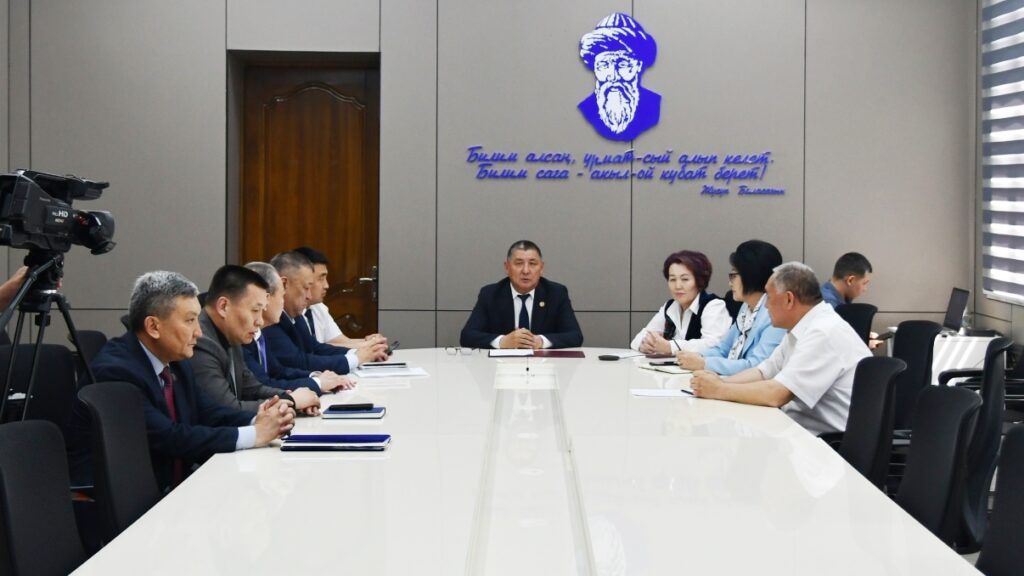 Кыргыз Республикасынын Президентинин 2025-жылдын 11-сентябрындагы №256 «Кыргыз Республикасынын билим берүү чөйрөсүндөгү айрым маселелер жөнүндө» жарлыгынын, Министрлер Кабинетинин 2025-жылдын 24-декабрындагы №826 токтомунун жана Илим, жогорку билим берүү жана инновациялар мниистрлигииин 2026-жылдын 13-январындагы №6 буйругунун негизинде жүргүзүлүп жаткан кайра уюштуруу иштеринин алкагында 2026-жылдын 19-январындагы №7 6уйрук менен түзүлгөн комиссиянын чечимине ылайык, о.э. аймактык маселелер боюнча проректор Кундуз Базакееванын билдирүүсү жана 2026-жылдын 24-апрелиндеги №138 буйрук менен бекитилген структуранын негизинде КУУнун аймактардагы институттарынын жана колледждеринин директорлук кызматтарына дайындоо тууралуу 2027-жылдын 27-апрелинде чыгарылган буйрук менен КУУнун ректору Догдурбек Чонтоев тааныштырды.