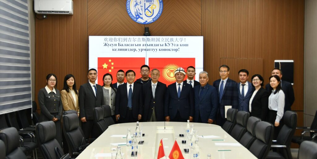 The delegation then met with staff of the Kyrgyz-Chinese Institute, where they discussed initiatives from both sides, as well as the development and dissemination of Sinology and educational materials. The meeting was also attended by: Xiao Ningning – Deputy Secretary General of CAFIU, Tong Yongchun – Senior Researcher of CAFIU, Jiao Qiang – Third Secretary of the Embassy of the People’s Republic of China in Kazakhstan, Yan Ling – Deputy Secretary of the Party Committee, Vice President and Secretary General of the Shaanxi Provincial Charity Organization, Zhou Jiaxing – Director of the Department of External Relations of the China Charity Alliance, Zhang Yinjun – Founder and President of the Beijing Changier Educational Foundation, Jin Lingying – Member of the Board of the Beijing Changier Educational Foundation, and others, as well as Baktybek Keldibekov – Director of the Department of International Cooperation and Relations of KNU, Sofia Apaeva – Director of the Kyrgyz-Chinese Research Institute of KNU, Chyngyz Uzakbaev — Director of the International Institute of Medicine and Science of KNU, Dooron Kubatbek uulu — Chief of Staff of the Rector’s Office of KNU, Ulugbek Eresheev — Head of the SCO Research Center of the KCII, Moldobaeva Aisuluu – Head of the PhD and Master’s programs of the KCII and Baktygulov Sheradil – Head of the Research Department of the KCII.