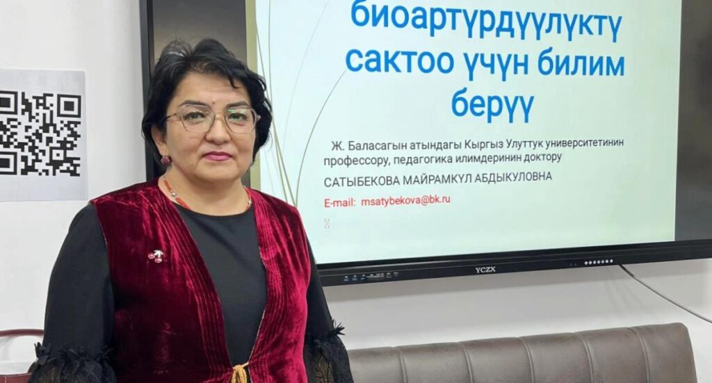 During the seminar, Professor M.A.Satybekova provided an in-depth explanation of the concept of sustainable development, elaborated on its conceptual foundations, and presented analysis of the regulatory documents governing sustainable development activities in the Kyrgyz Republic. Participants received detailed explanations of all 17 Sustainable Development Goals, along with an outline of the specific features of integrating the SDGs into the educational sphere.