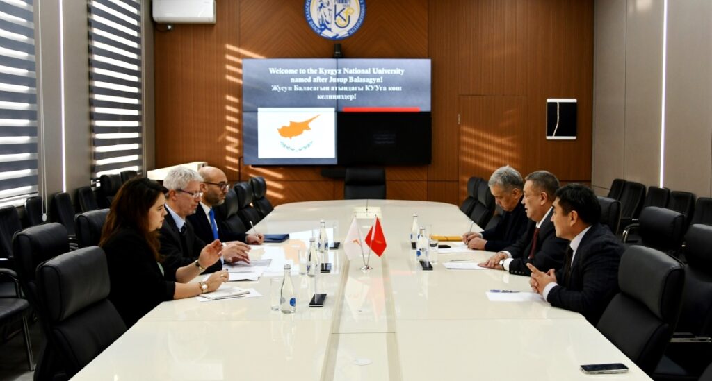 During the meeting, the parties discussed areas of common interest between universities in the Republic of Cyprus and Kyrgyz National University named after Jusup Balasagyn. The Ambassador of Cyprus noted that he would facilitate cooperation between his country’s universities and Kyrgyzstan’s premier university. The First Vice-Rector of the Kyrgyz National University expressed his willingness to establish contacts with the leading university of Cyprus for further collaboration in all areas of educational activity, except for technical ones.