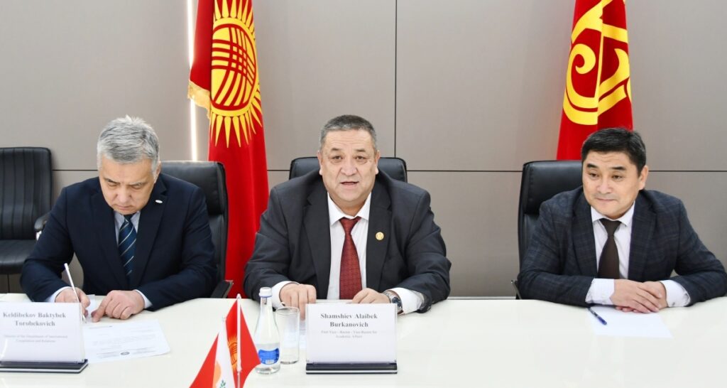 The meeting was also attended by Deputy Head of Mission Vakis Zissimos, Director of the Department of International Cooperation and Relations Bakyt Keldibekov, and Head of the Academic Department Almazbek Kydyraliev.