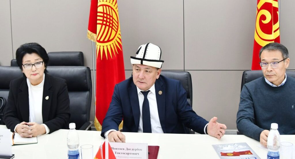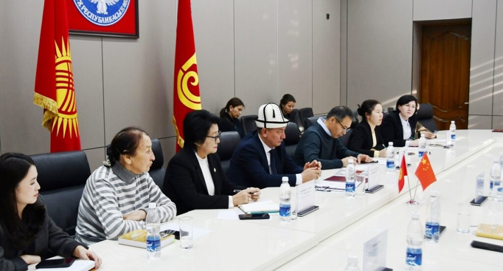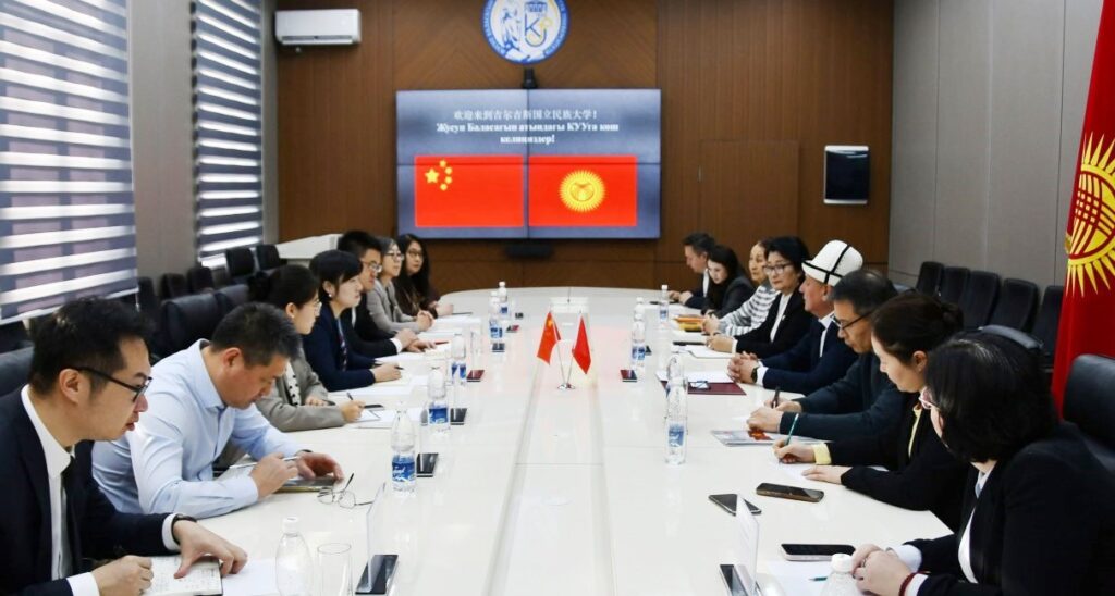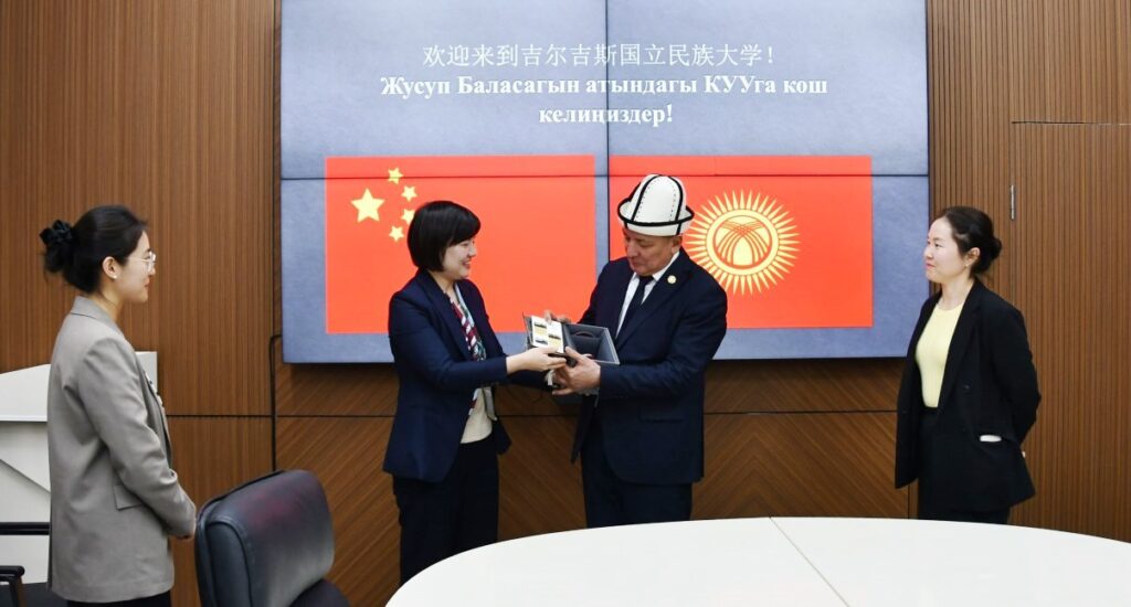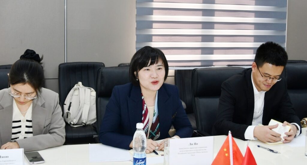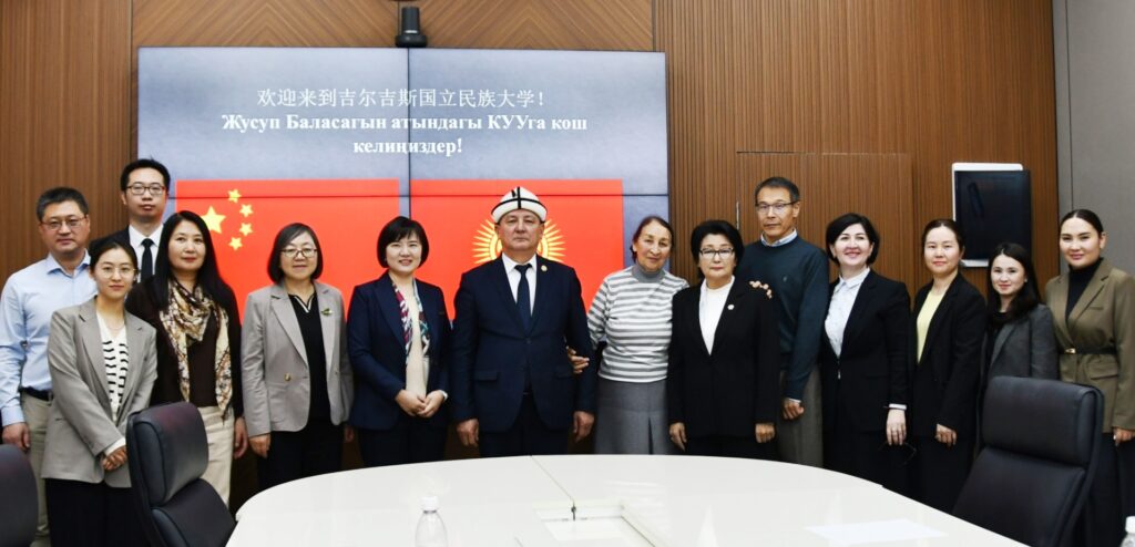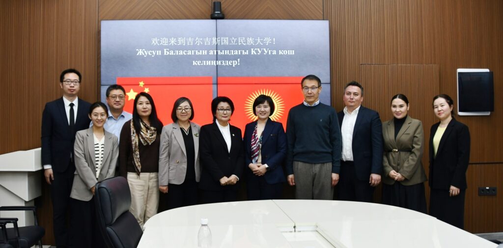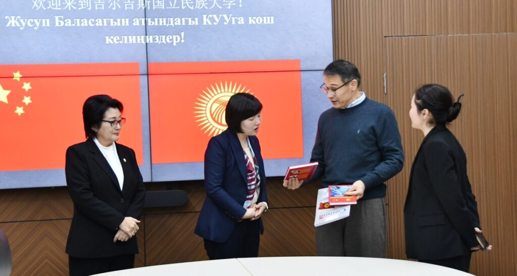 The meeting was attended by Jiao Chen – Third Secretary of the Embassy of the People’s Republic of China in the Kyrgyz Republic; Yu Jianfei – Director of the European Section of the International Cooperation Office of the Chinese Academy of Social Sciences; Jin Zhe – Deputy Director of the Institute of Russia, Eastern Europe, and Central Asia at the Chinese Academy of Social Sciences; Zhang Qin – Head of the Central Asia and Caucasus Department at the Institute of Russia, Eastern Europe, and Central Asia at the Chinese Academy of Social Sciences; Gulbara Sydykova – Vice-Rector for Investments at KNU; Sofya Apaeva – Director of the Kyrgyz-Chinese Research Institute; Sheradil Baktygulov – Head of the Research Department at the Kyrgyz Institute of International Studies; and Zhyrgal Mombekova – Professor at the Institute of History and Regional Studies.