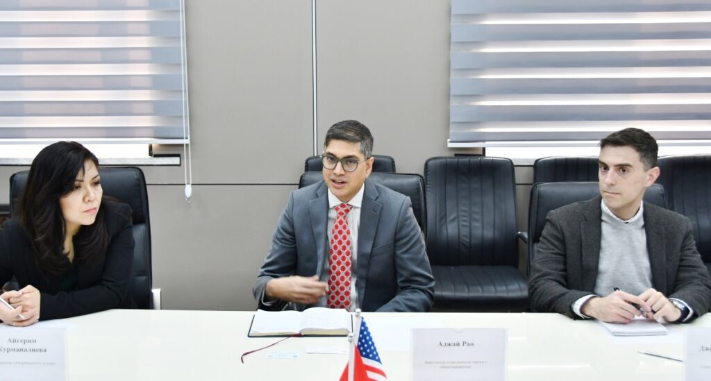 On January 20, 2026 Alaybek Shamshiev, First Vice-Rector and Vice-Rector for Academic Affairs at Kyrgyz National University named after Jusup Balasagyn, received representatives of the U.S. Embassy in the Kyrgyz Republic, led by Ajay Rao, Deputy Head of the Public Affairs Section.