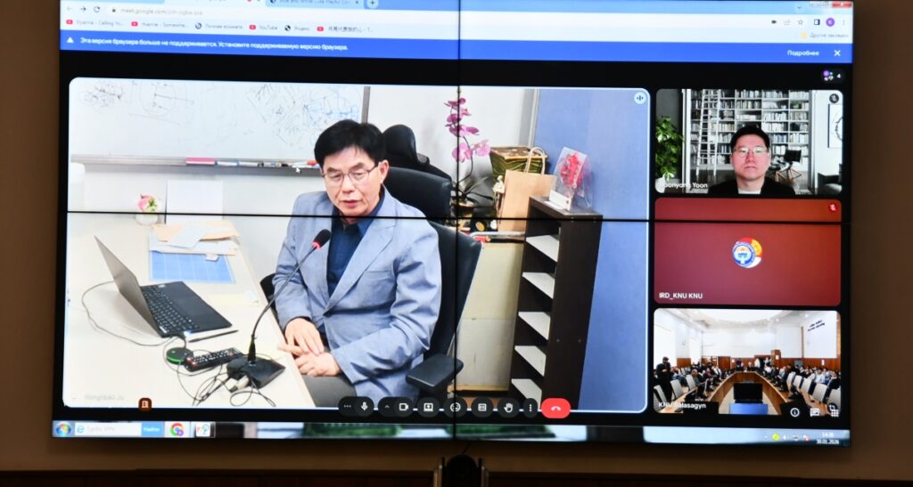 Representatives of Keimyung University, Aida Ismailova, Ambassador Extraordinary and Plenipotentiary of the Kyrgyz Republic to the Republic of Korea took part in the ceremony online. Offline participants were Rector of KNU, Professor Dogdurbek Chontoev; Head of the Pervomaisky District Education Department of the Bishkek City Mayor’s Office, Mirbek Asanov (online), and Director of Educational Complex No. 69 named after T. Satylganov, Sairagul Ataeva, who shared their thoughts on the project’s significance, its contribution to human capital development, and the strengthening of international educational cooperation.