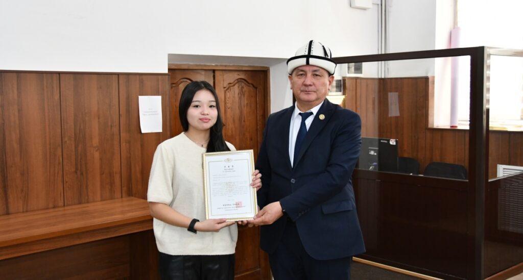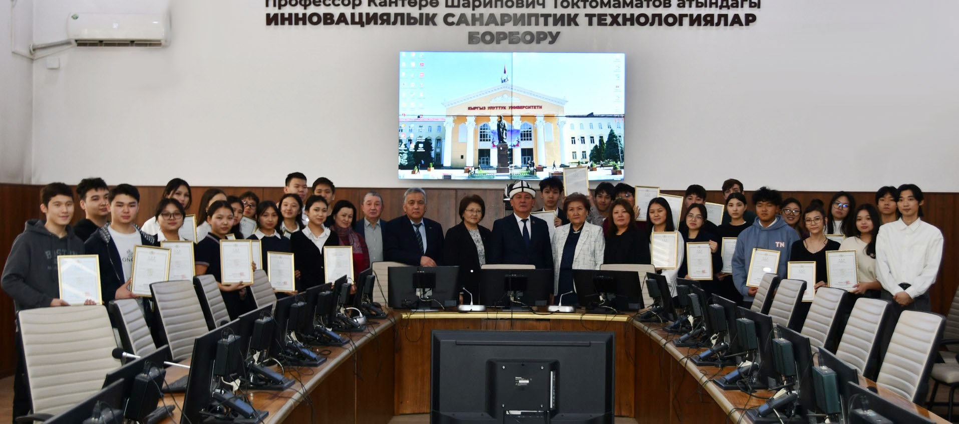 At the end of the ceremony, Rector of KNU Dogdurbek Chontoev and Director of Educational Complex No. 69, Sairagul Ataeva, presented international certificates to the graduates of the first course on artificial intelligence.