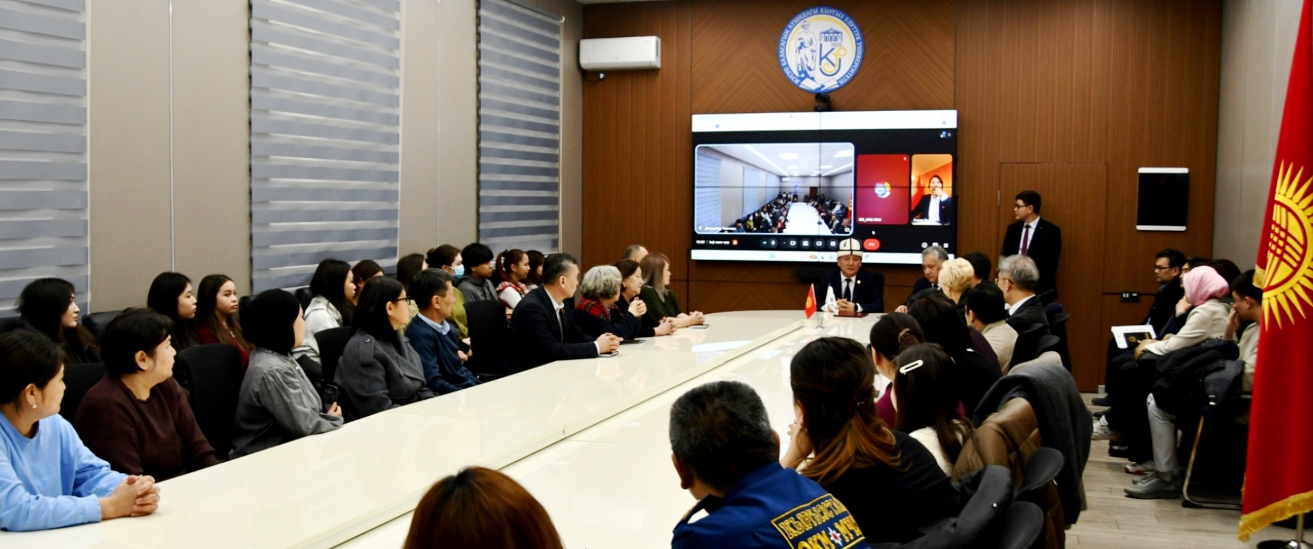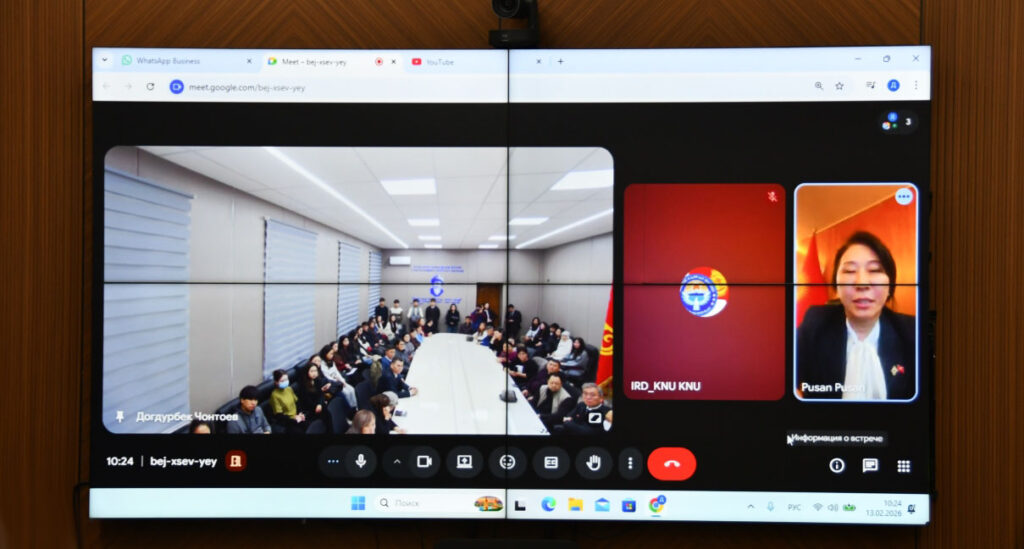 Also the meeting was attended by Aida Ismailova, Ambassador Extraordinary and Plenipotentiary of the Kyrgyz Republic to the Republic of Korea (online); Mr. Jo Chan-woo, Director of the Republic of Korea Education Center in Bishkek; Vyacheslav Khan, a 1985 graduate of the National University’s Law School; Victoria Tigay, Vice President of the Public Association of Koreans in the Kyrgyz Republic; and faculty deans.