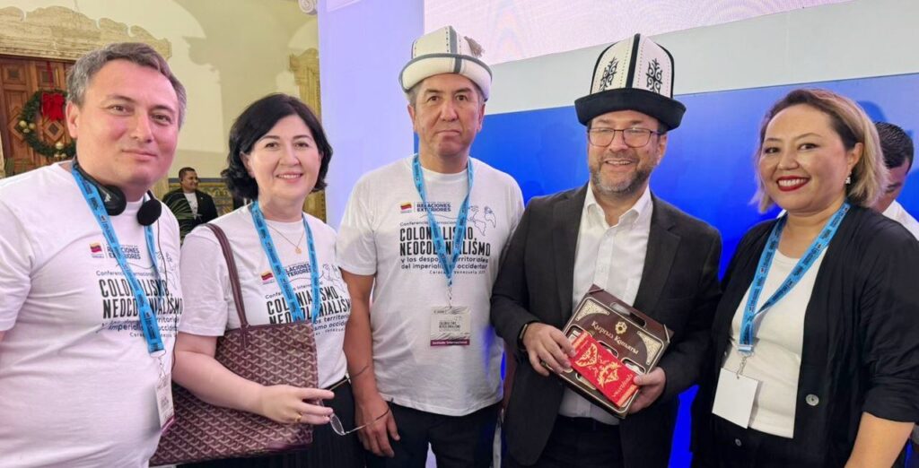 Директор Кыргызско-китайского исследовательского института (ККИИ) Софья Апаева заведующий научно-исследовательским центром ШОС ККИИ Улугбек Ерешеев 2 — 4 октября 2025 года приняли участие в Международном форуме против колониализма и неоколониализма, состоявшемся в столице Боливарианской Республики Венесуэла городе Каракас.