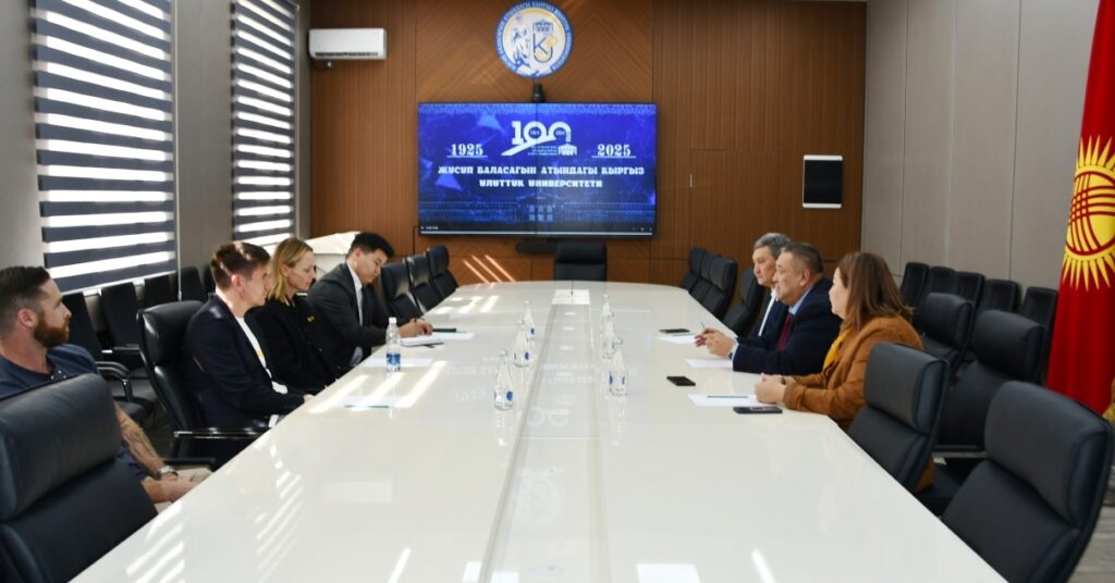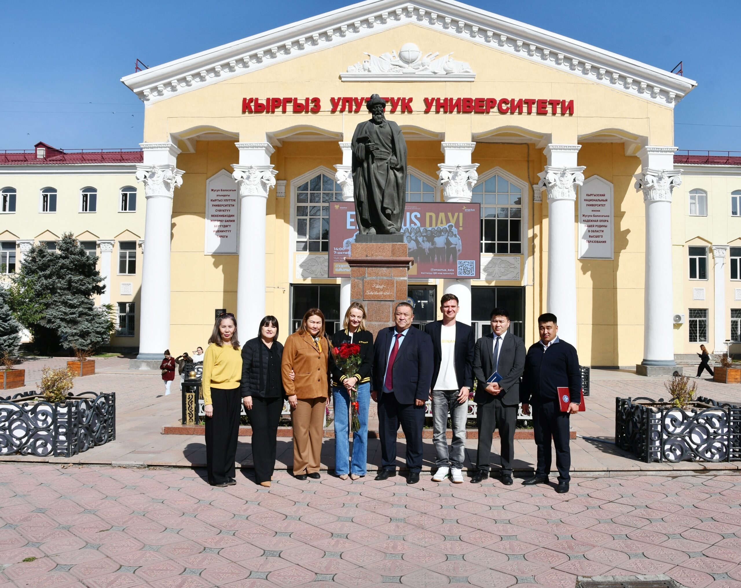 Перед началом занятия г-жу Рейчел Конлан принял первый проректор – проректор по учебной работе КНУ Алайбек Шамшиев. Он отметил, что финансовая грамотность необходима не только для молодежи, но и для всего населения. – Мы готовы создать на базе ВШЭ создать научно-исследовательский центр по финансовой грамотности, где могли бы организовать обучение по финансовой грамотности для населения Кыргызстана. Если будут какие-то предложения мы готовы принять и обсудить, – сказал Алайбек Шамшиев. Он также пригласил г-жу Рейчел Конлан на юбилейные торжества по случаю 100-летия КНУ.