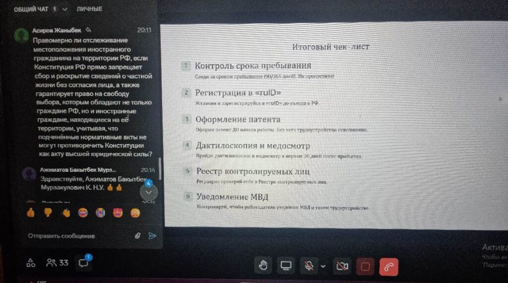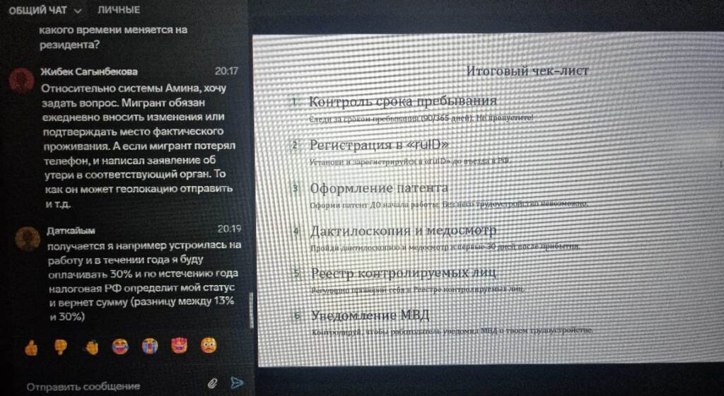 Эксперты сосредоточили внимание слушателей на практических аспектах защиты трудовых прав кыргызских мигрантов в России. В ходе вебинара были подробно освещены следующие критически важные направления: