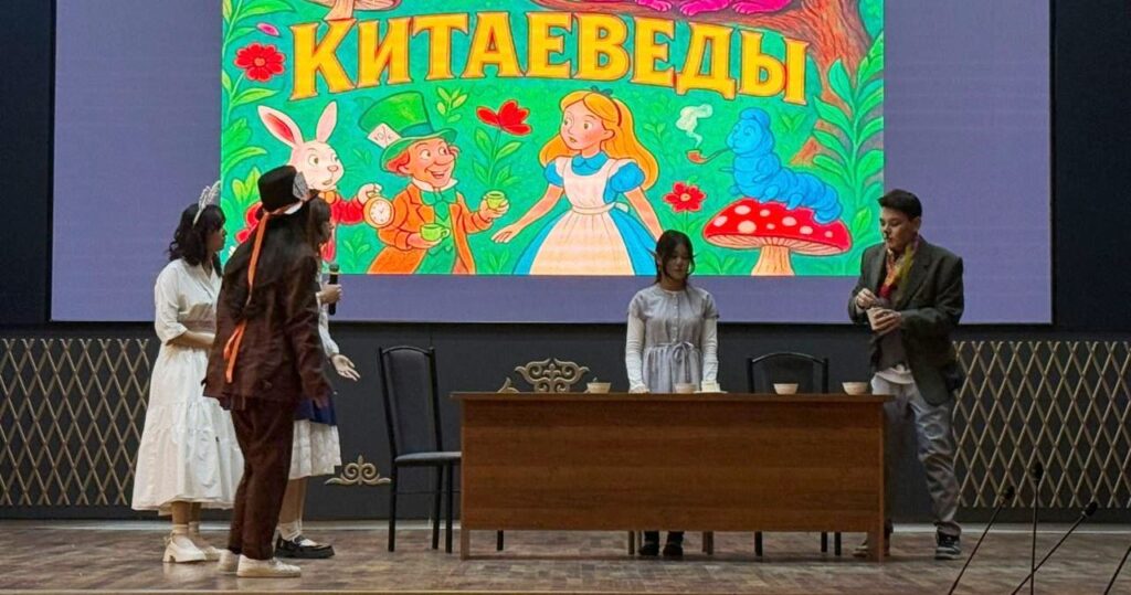 Группа «Китаеведение» поразила зрителей красочной и оригинальной сценкой по мотивам «Алисы в Стране чудес» — с атмосферой волшебства, фантазии и ярких персонажей.