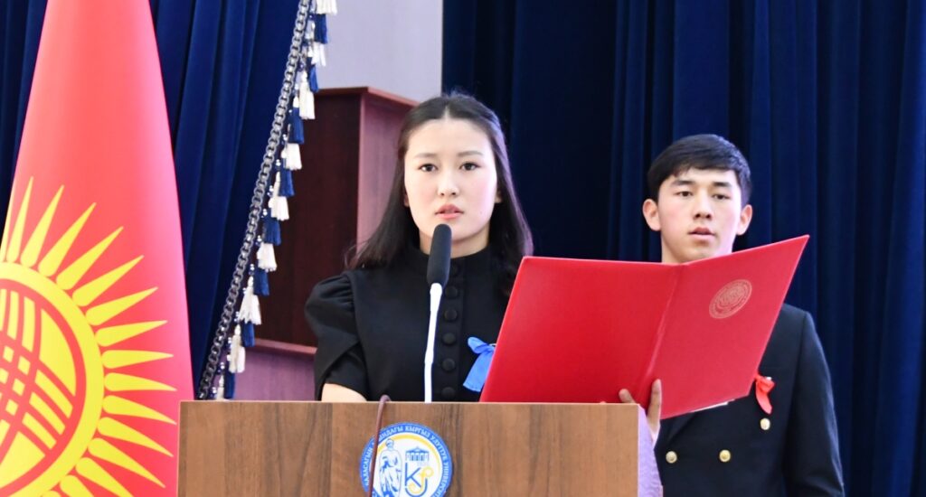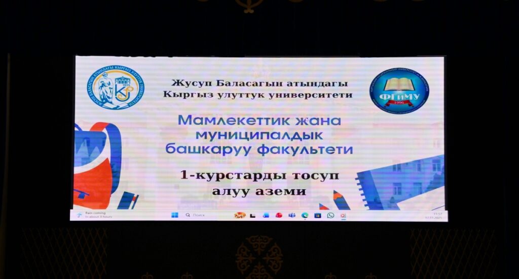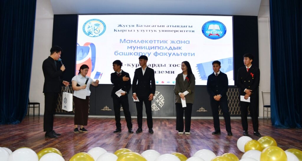 Мероприятие с приветственным словом открыл декан факультета ГМУ Алмазбек Кадыр уулу, проректор по региональным вопросам Кундузгуль Базакеева, а также руководитель образовательной программы «Гос. и мун.управление» Гульсайра Нурматова. В своих словах они пожелали первокурсникам успехов в учебе, активности и яркой студенческой жизни.