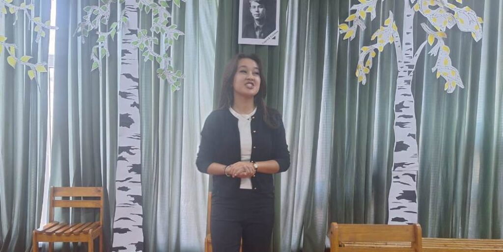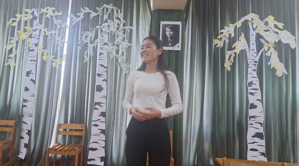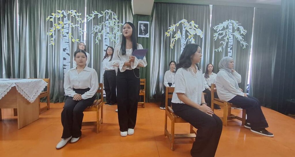 Особое впечатление на зрителей произвела сценическая миниатюра по стихотворению «Письмо к женщине», которую представили Акынали уулу Кайрат и Бактыбек кызы Камила, создав живой диалог и выразив эмоциональную драматургию поэта. Атмосферу праздника дополнила музыка на стихи Сергея Есенина в исполнении Александра Малинина, звучавшая в записи. И зажигательный танец на слова Сергия Есенина «Я московский озорной гуляка…» завершил выступления 2-го дня. Осенние встречи продолжаются, открывая новые страницы классической русской литературы и объединяя студентов вокруг её вечных ценностей.