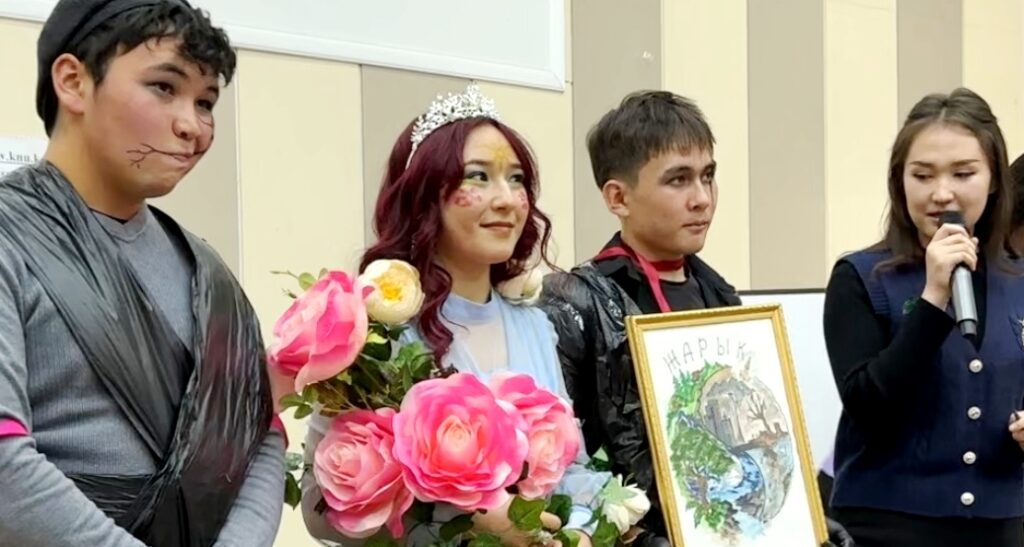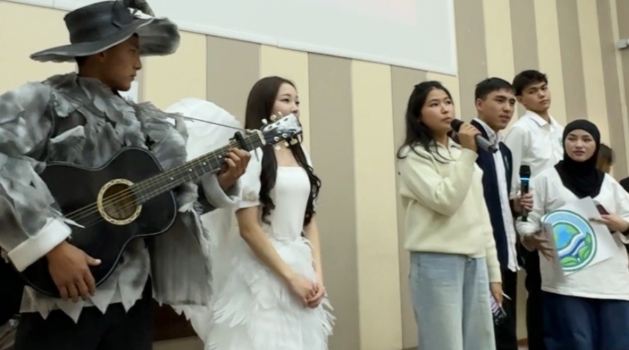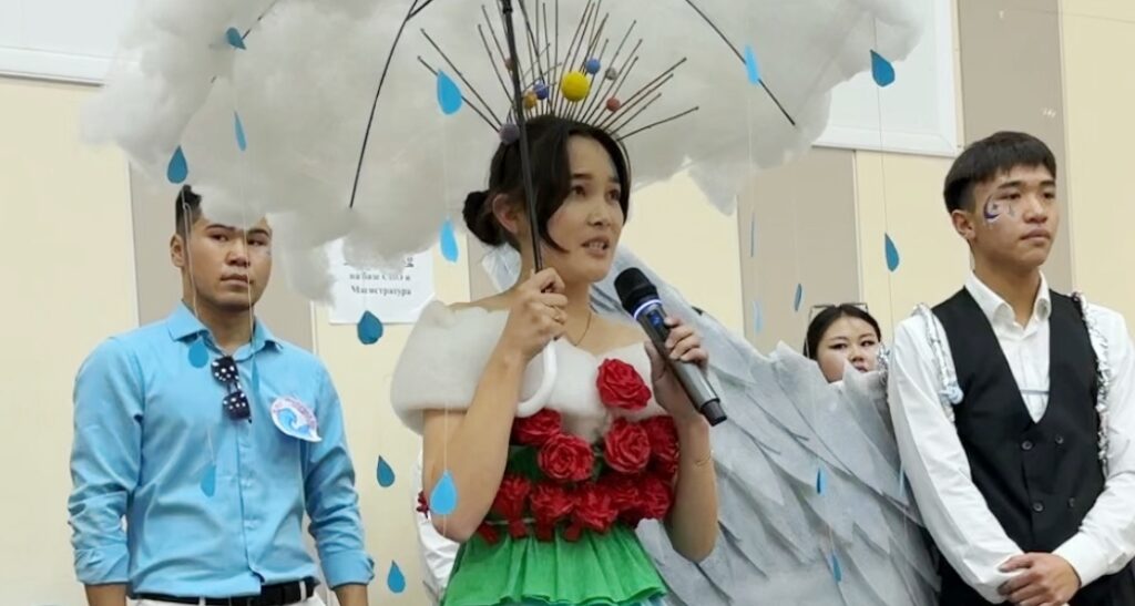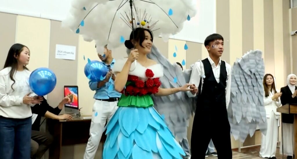 Чтобы сделать праздник интересным и запоминающимся, заместитель декана по воспитательной работе Сарсеитова А.Ш. устроила конкурс костюмов, сделанные своими руками среди студентов первого курса по разным специальностям! Студенты подготовили и показали свои наряды в сопровождении музыкального номера и связали свои костюмы со своей специальностью! Студенты направления экология, гидрометеорология, география, туризм представили свои наряды публике и исполнили музыкальные номера!