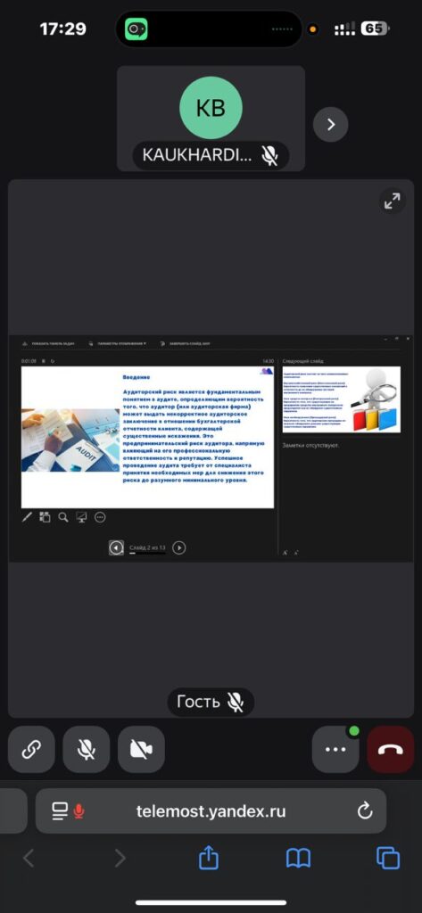 - Студентка 4 курса кафедры БУАиА Омурбекова Айжамал с докладом на тему«Аудиторский риск: сущность, структура и пути их минимизации» (науч. рук. – к.э.н., доцент кафедры БУАиА Бятова Каухар-Дина Викторовна);