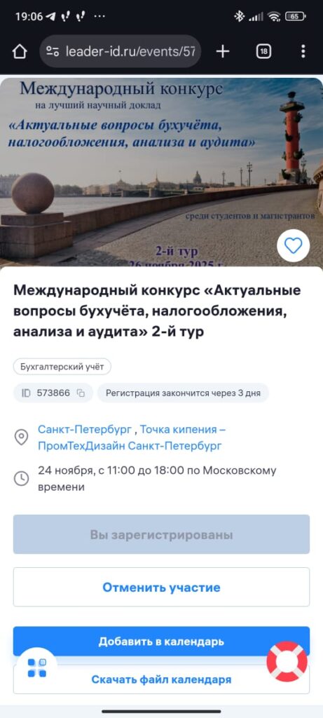 24 ноября 2025 г. в Санкт-Петербургском государственном университете промышленных технологий и дизайна прошел II тур Международного конкурса на лучший научный доклад «Актуальные вопросы бухучёта, налогообложения, анализа и аудита» среди студентов и магистрантов, организованный кафедрой бухгалтерского учёта и аудита Санкт-Петербургским государственным университетом промышленных технологий и дизайна.