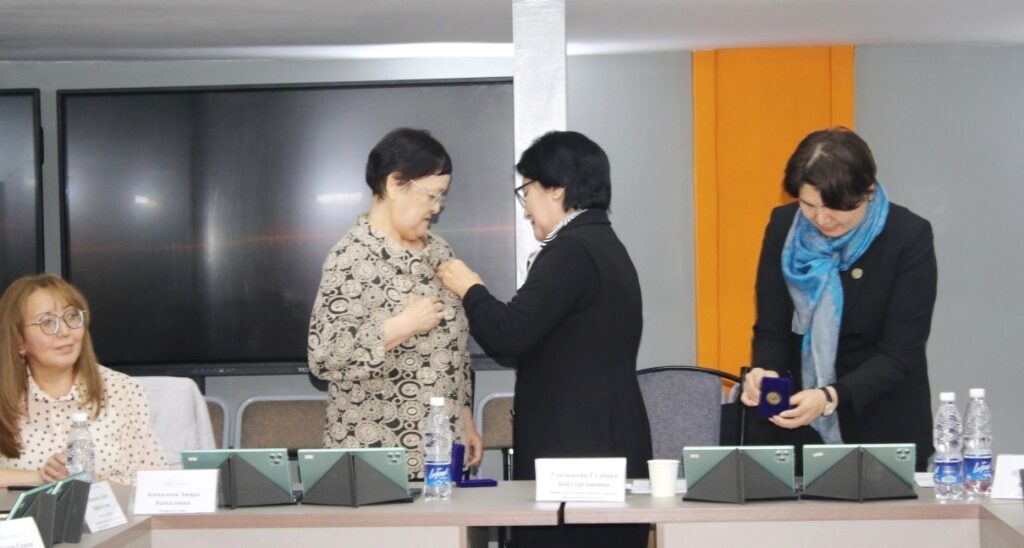 Торжественная часть круглого стола началась с награждения профессора, к.э.н. Камаловой А.К. памятной юбилейной медалью к 100-летию университета. Камалова А.К. была награждена за многолетний добросовестный труд и весомый вклад в развитие факультета, который она возглавляла в качестве декана. Под ее руководством факультет укрепил свои позиции, расширил образовательные направления и усилил работу со студентами и академическим сообществом. Руководство университета подчеркнуло, что преданность Камаловой А.К. своему делу, ее профессиональная мудрость и активная роль в формировании университетской среды служат примером для коллег и молодежи. Благодаря таким людям сохраняются традиции, ценности и высокий уровень образования, которыми по праву гордится университет.