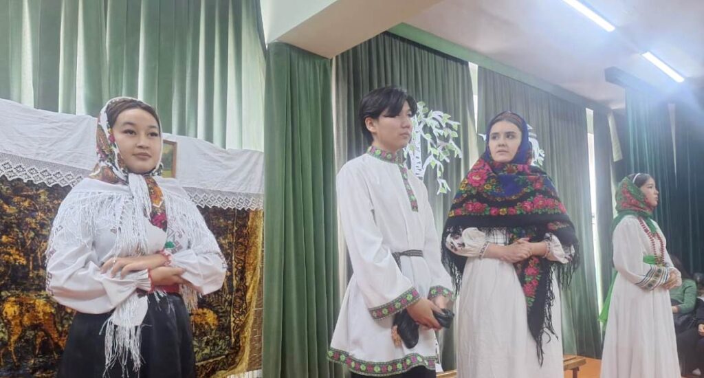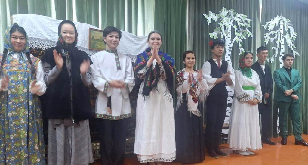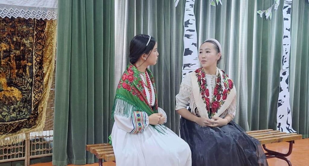 Музыкальное оформление и звуковые эффекты усиливали драматизм сцен. Особое место заняло символическое звучание «грозы» – как природного явления и как внутреннего взрыва в душе героини. Роль Катерины в постановке исполнили две студентки: 4 декабря – Сакимбаева Асылзат (3-й курс); 5 декабря – Урматова Медина (2-й курс). Савел Прокофьевич Дикой, купец, значительное лицо в городе, – Шарипов Орифжон. Борис Григорьевич, племянник Дикого, молодой человек, порядочно образованный, – Пападзе Давид. Марфа Игнатьевна Кабанова (Кабаниха), богатая купчиха, вдова, – Алиева Карина. Тихон Иваныч Кабанов, сын Кабановой, – Акынали уулу Кайратбек. Кулигин, мещанин, часовщик-самоучка, – Бекжан уулу Нурбек. Варвара, дочь Кабановой, – Асангожоева Айжан. Феклуша, странница, – Муканбетова Жазгул. Глаша, девушка, – Турдалыева Тунукай.