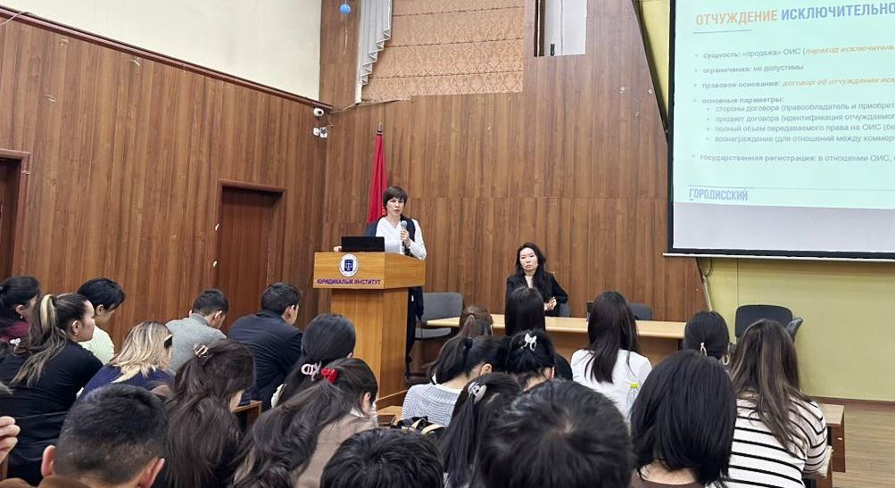 9 декабря 2025 года на базе Юридического института, Министерство науки, высшего образования и инноваций Кыргызской Республики провели гостевую лекцию по вопросам интеллектуальной собственности для преподавателей, студентов,  аспирантов и магистрантов Юридического института.