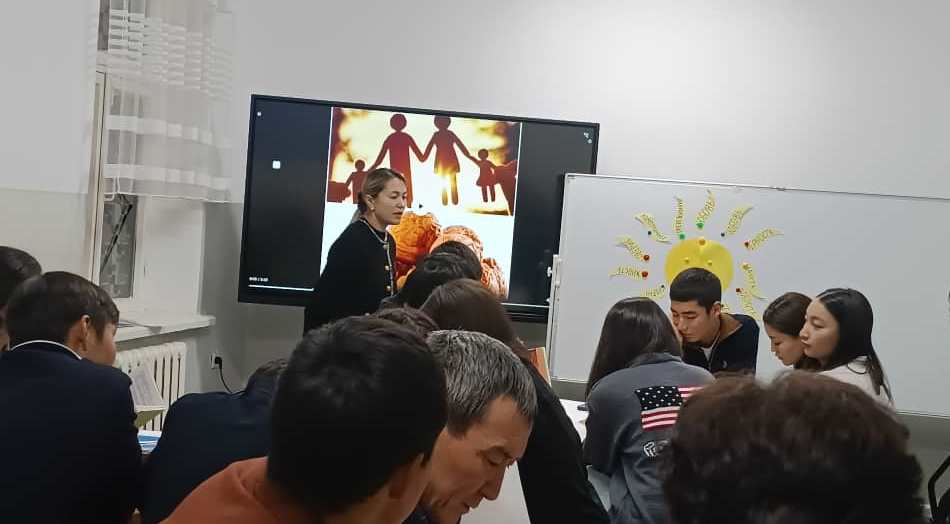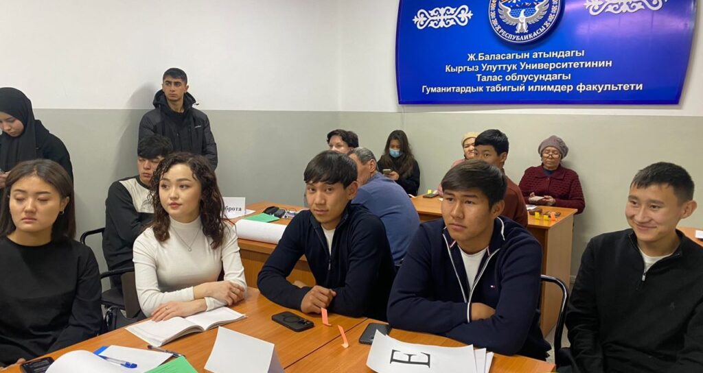 18 декабря 2025 года в рамках реализации Целей устойчивого развития (ЦУР) преподаватель Гуманитарно-естественнонаучного факультета КНУ им. Ж.Баласагына в Таласской области Венера Шаймарданова провела круглый стол для студентов 3-х курсов на тему: “Институт семьи как основа социального благополучия и устойчивого развития общества”.