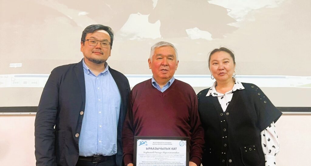 С лекцией выступил кандидат географических наук, старший научный сотрудник, руководитель 2-го отдела «Климат, вода и геоэкология» Центрально-Азиатского института прикладных исследований Земли (ЦАИИЗ) Усубалиев Рыскул Абдыжакыпович.