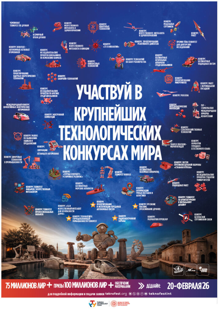 TEKNOFEST вновь проводит крупнейшие в мире технологические конкурсы с призами. В 2026 году будет организовано 52 конкурса и 127 подкатегорий. Приём заявок открыт до 20 февраля.