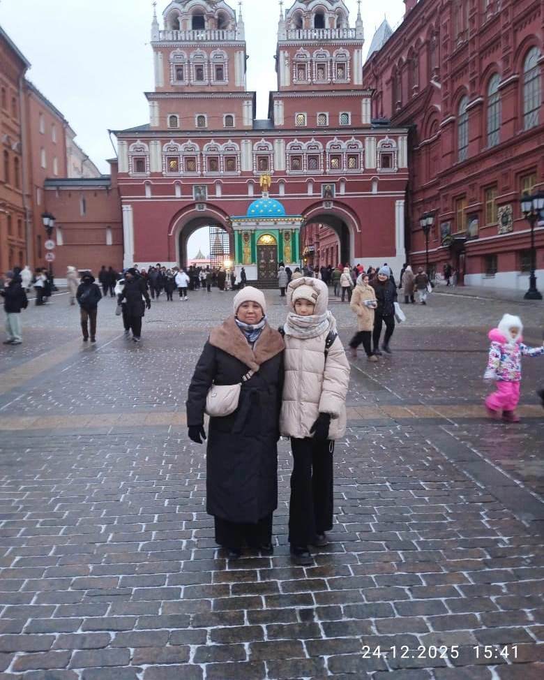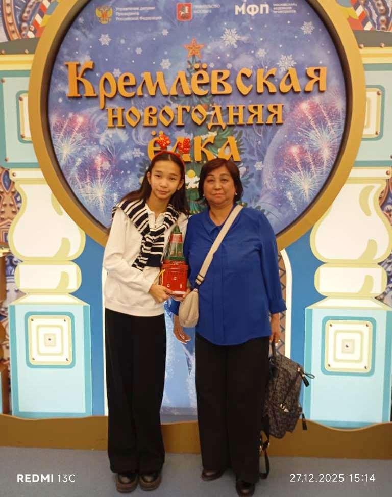 Мы, старший преподаватель английского языка КНУ им. Ж.Баласагына Токталиева Таалайгуль с дочкой Алией, выражаем глубокую благодарность профсоюзу МГУ им.М.Ломоносова и профкому КНУ им. Ж.Баласагына за предоставленную нам возможность посетить Московскую Кремлевскую елку в конце декабря 2025 года.