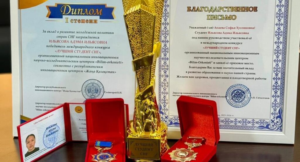 Коллектив Кыргызско-китайского исследовательского института поздравляет студентку 3 курса колледжа ККИИ Ильясову Адэму с присвоением почётного звания «Лучший студент СНГ» по итогам международного конкурса, прошедшего 13 декабря 2025 года в городе Астана (Республика Казахстан).