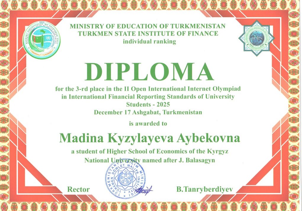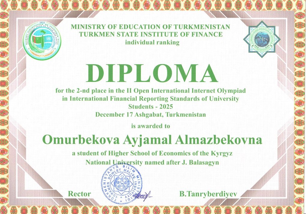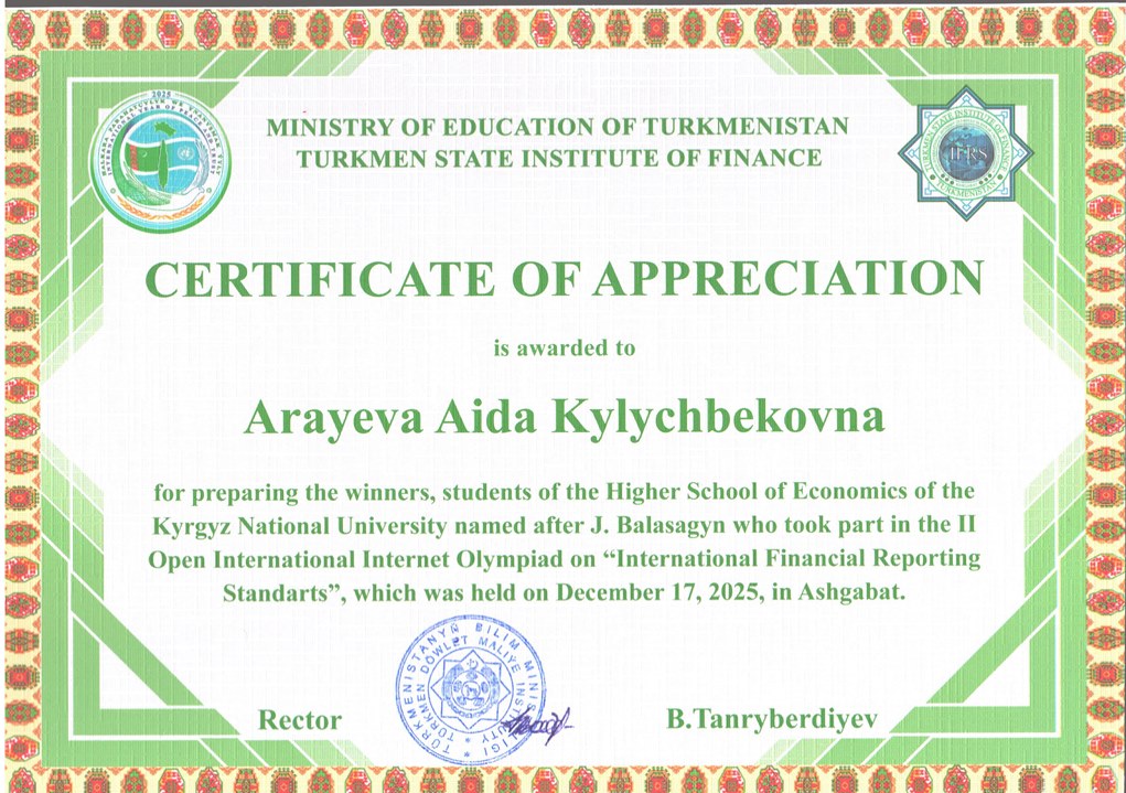 Туркменский государственный институт финансов подвёл итоги II Открытой международной интернет-олимпиады по дисциплине «Международные стандарты финансовой отчётности»,