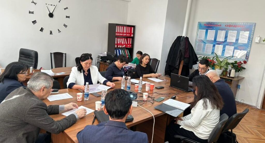 10 февраля 2026 года на кафедре философии, теории и истории культуры ИСГН состоялось первичное обсуждение диссертационного исследования PhD докторанта Алыбаева Адылбека Шайлообековича на тему: «Трансформация общественного сознания кыргызов в эпоху постмодернизма». Исследование посвящено анализу трансформации общественного сознания кыргызов, культурных и ценностных проблем постномадов эпохи постмодернизма.
