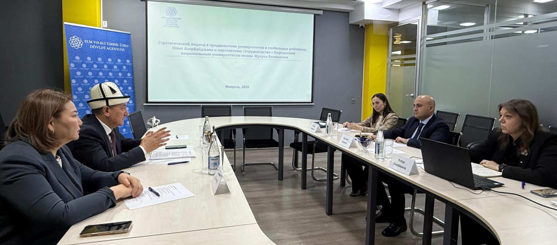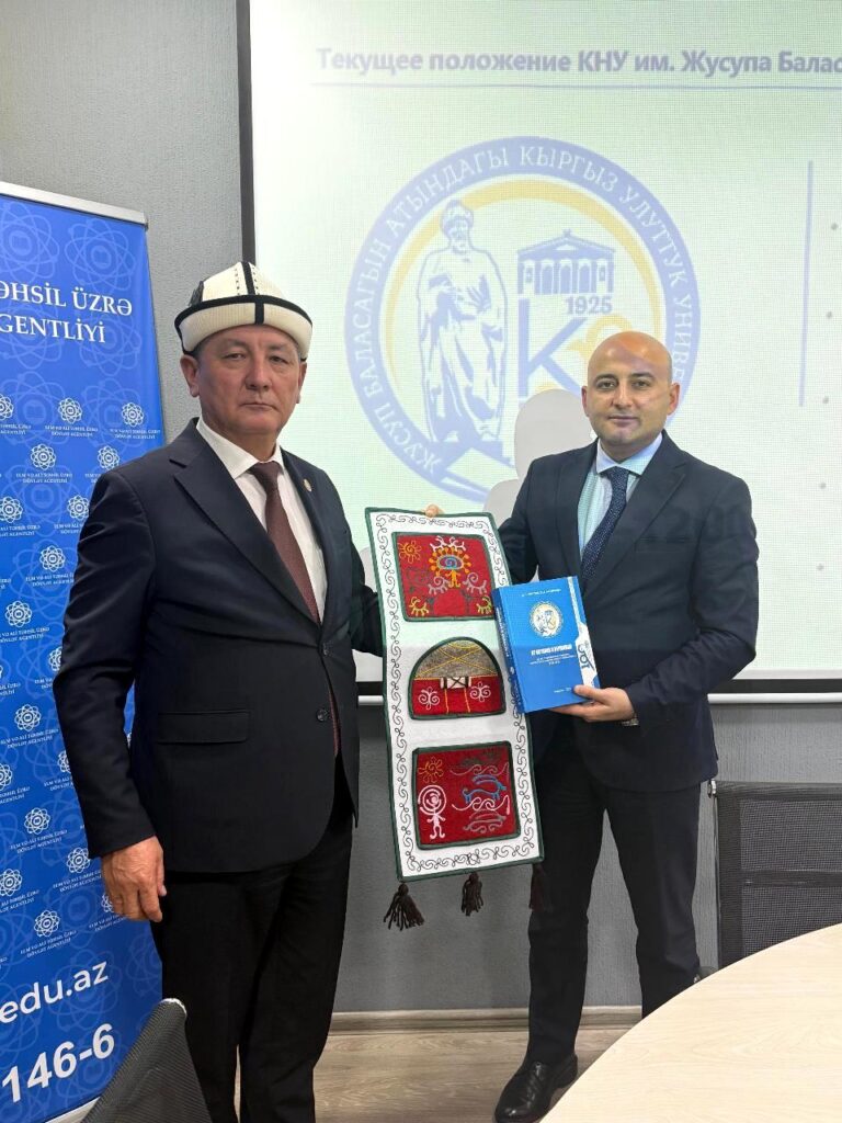 19 февраля 2026 года ректор Кыргызского национального университета имени Жусупа Баласагына, профессор Догдурбек Чонтоев встретился с директором Департамента международного сотрудничества Государственного агентства по науке и высшему образованию Азербайджанской Республики Муждатом Гасановым.