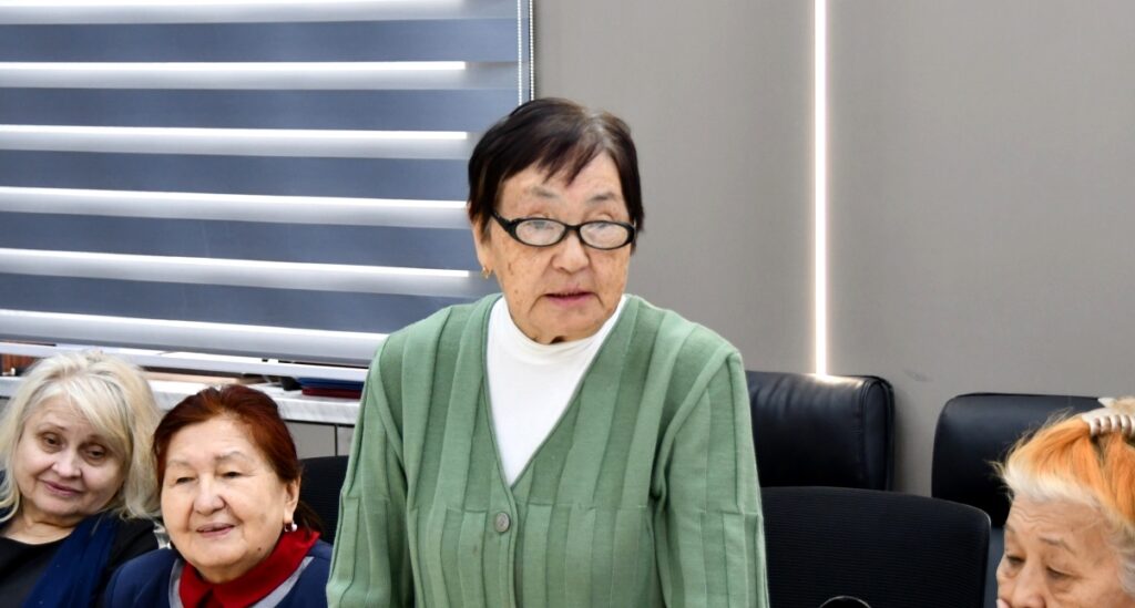 Проректор по государственному языку и языковой политике Назаркул Ишекеев, проректор по инвестициям Гульбара Сыдыкова, проректор по региональным вопросам Кундузгуль Базакеева и председатель объединенного профкомитета Кубанычбек Жумабеков отметили огромную роль старшего поколения в науке, семье и воспитании общества.