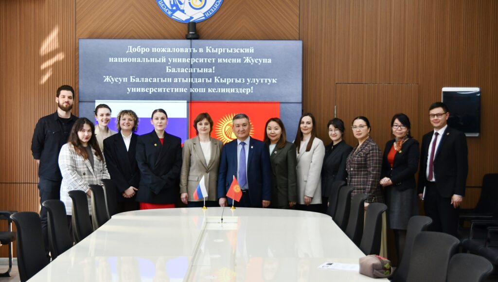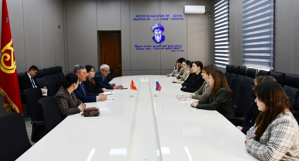 25 марта 2026 года проректор по научной работе Кыргызского национального университета имени Жусупа Баласагына (КНУ) Мырзабек Камчыбек уулу принял делегацию Московского государственного лингвистического университета (МГЛУ) во главе с заместителем директора Центра социокогнитивных исследований дискурса, профессором кафедры общего и сравнительного языкознания МГЛУ Марией Киосе.
