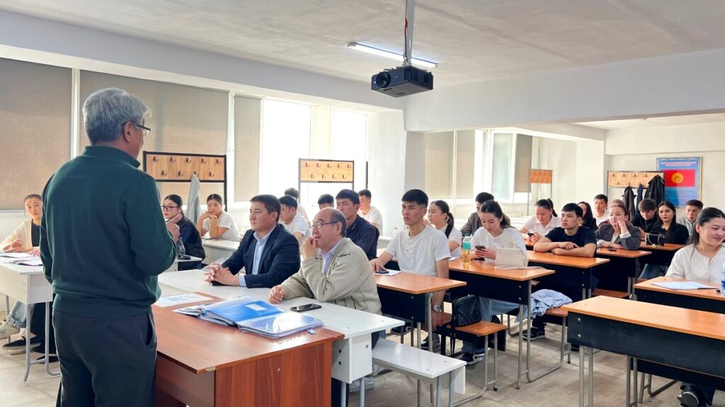 Профессор Акматалиев поделился своим научным и практическим опытом, привел актуальные примеры и международные практики, а также обсудил со студентами перспективы развития государственного управления в условиях глобальных изменений.
