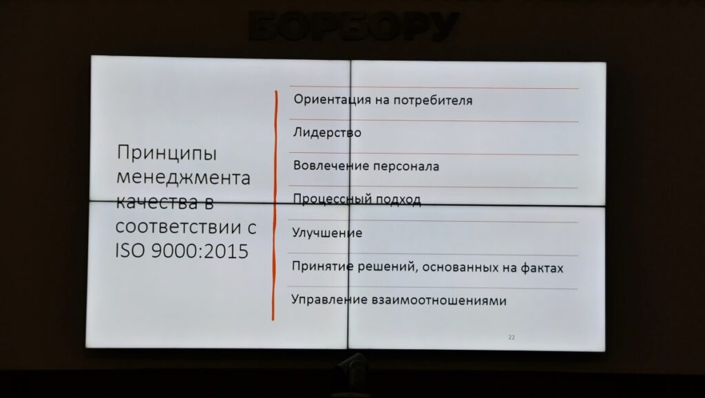 В рамках семинара участники ознакомились с ключевыми принципами менеджмента качества, включая процессный подход, управление рисками и ориентированность на потребителя. Особое внимание было уделено вопросам повышения эффективности внутренних процессов и внедрения механизмов постоянного совершенствования.