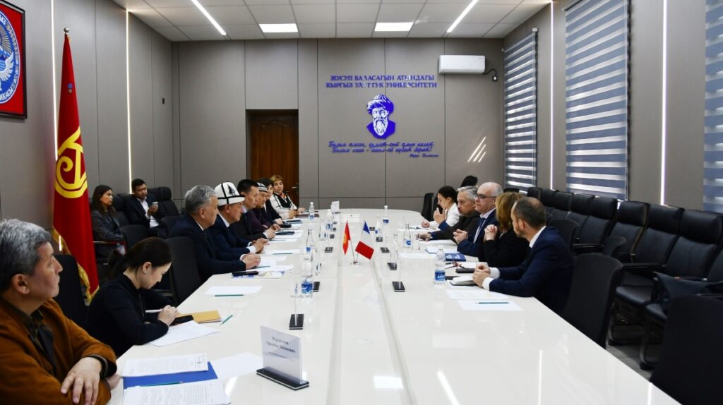 10 апреля 2026 года Кыргызский национальный университет с официальным визитом посетил Чрезвычайный и Полномочный Посол Франции в Кыргызстане г-н Николя Фай. В составе делегации также присутствовала новый региональный атташе по вопросам образовательного и университетского сотрудничества г-жа Грета Тиллуа-Комур.