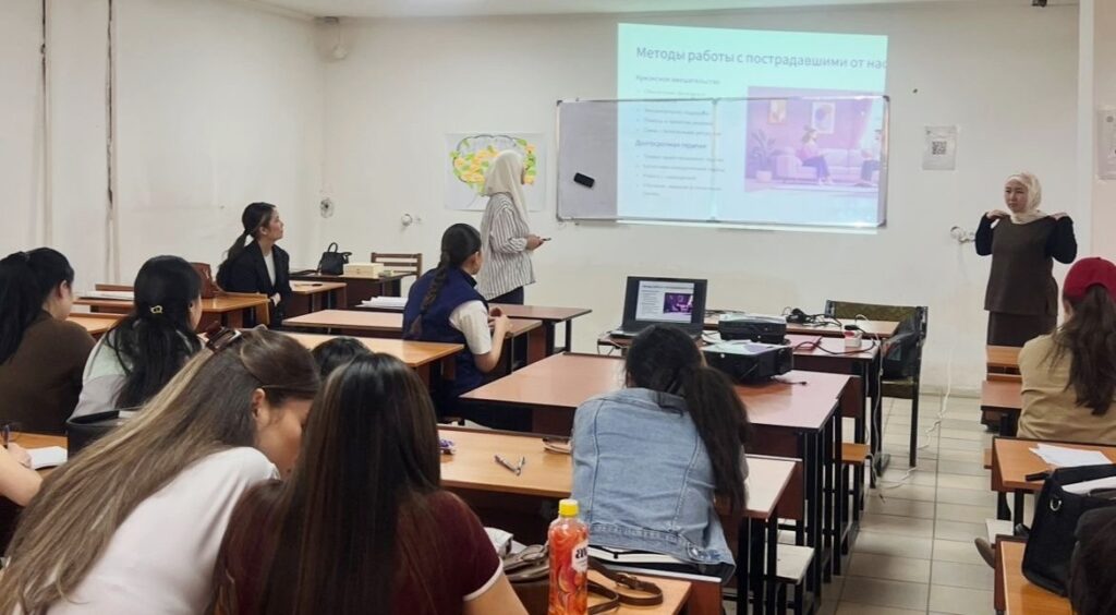 1 апреля 2026 года студенты Ошского государственного университета Эргешова Зумрат и Эргашева Бегайым, обучающиеся по программе академической мобильности, провели лекцию для студентов 3-го и 4-го курсов Института социально-гуманитарных наук направлений «Психология» и «Клиническая психология» на тему: «Профилактика семейного насилия» в контексте ЦУР 5.1./5.
