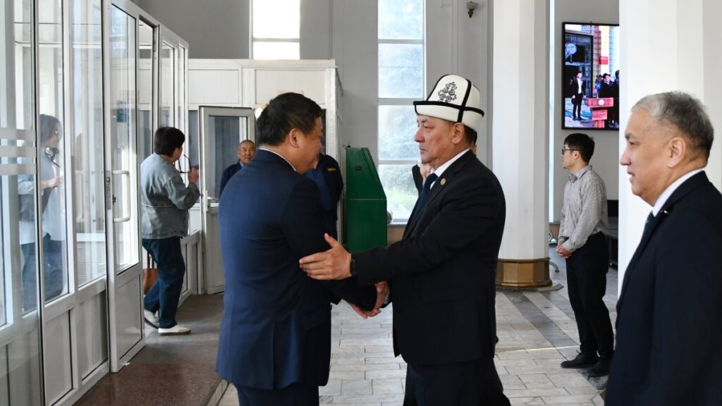 13 апреля 2026 года ректор Кыргызского национального университета имени Жусупа Баласагына (КНУ), профессор Догдурбек Чонтоев встретился с делегацией Синьцзянского педагогического университета (СПУ) во главе с секретарем парткома вуза г-ном Цзян Хайцзюнь.