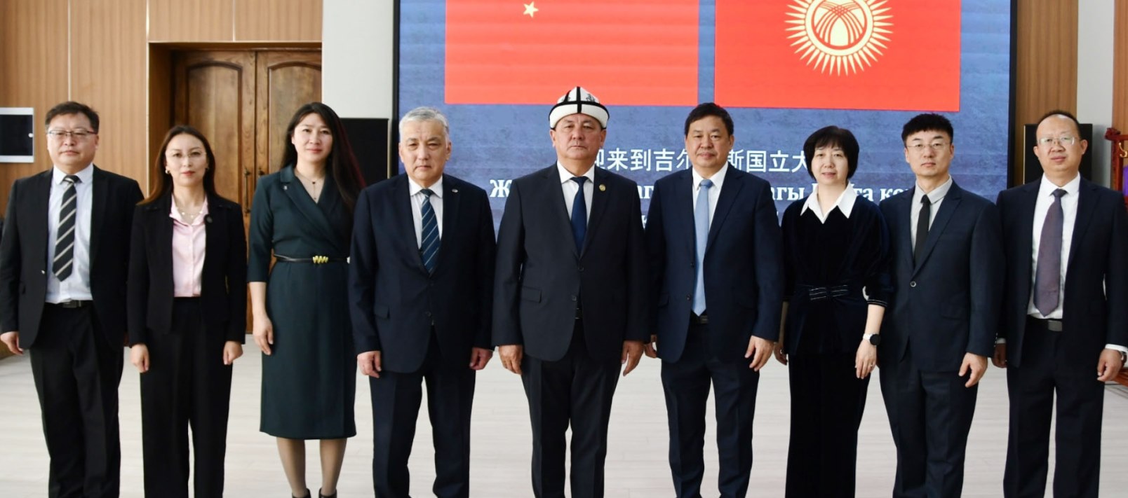 Ректор КНУ тепло поприветствовал членов делегации и отметил, что данный визит рассматривается как важный шаг на пути дальнейшего укрепления дружественных и партнерских отношений между двумя вузами. По его словам, Синьцзянский педагогический университет по праву занимает достойное место среди ведущих образовательных учреждений Китайской Народной Республики и вносит значительный вклад в развитие науки и подготовку высококвалифицированных кадров. КНУ и СПУ связывают многолетние партнерские отношения. Созданный при Национальном университете Институт Конфуция служит важной платформой для укрепления образовательных, научных и культурно-гуманитарных связей между КР и КНР. «Уверен, что наше партнерство будет и впредь динамично развиваться и послужит прочной основой для долгосрочного и взаимовыгодного сотрудничества», — заключил ректор КНУ.