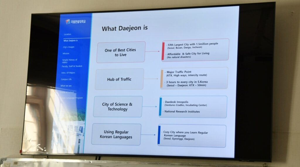 В рамках встречи представители университета Ханбат также провели встречу со студентами. На ней была представлена подробная информация об особенностях обучения в Южной Корее, образовательных программах и университете.
