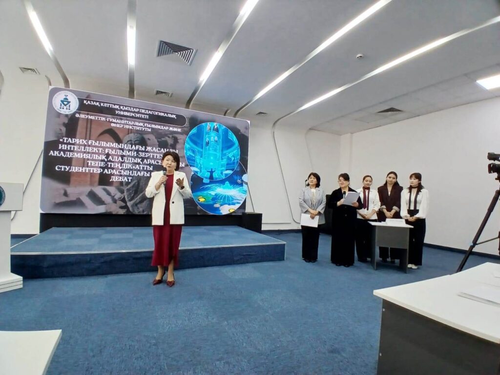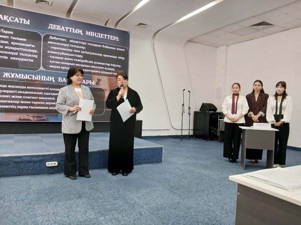 10 апреля 2026 года в рамках программы международного сотрудничества делегация КНУ им. Ж.Баласагына в составе заведующей кафедрой философии, теории и истории культуры Института социально-гуманитарных наук, доцента А.Т.Качкыновой, кандидата философских наук, доцента Э.Дж.Апсаматовой, старших преподавателей Г.У.Байбосуновой и Н.Т.Урумкуловой приняла участие в научных дебатах на тему «Искусственный интеллект в исторической науке: баланс между научным исследованием и академической честностью» в Казахском национальном женском педагогическом университете (QyzPU). Мероприятие стало площадкой для поиска ответов на глобальные вызовы цифровой трансформации гуманитарного знания.