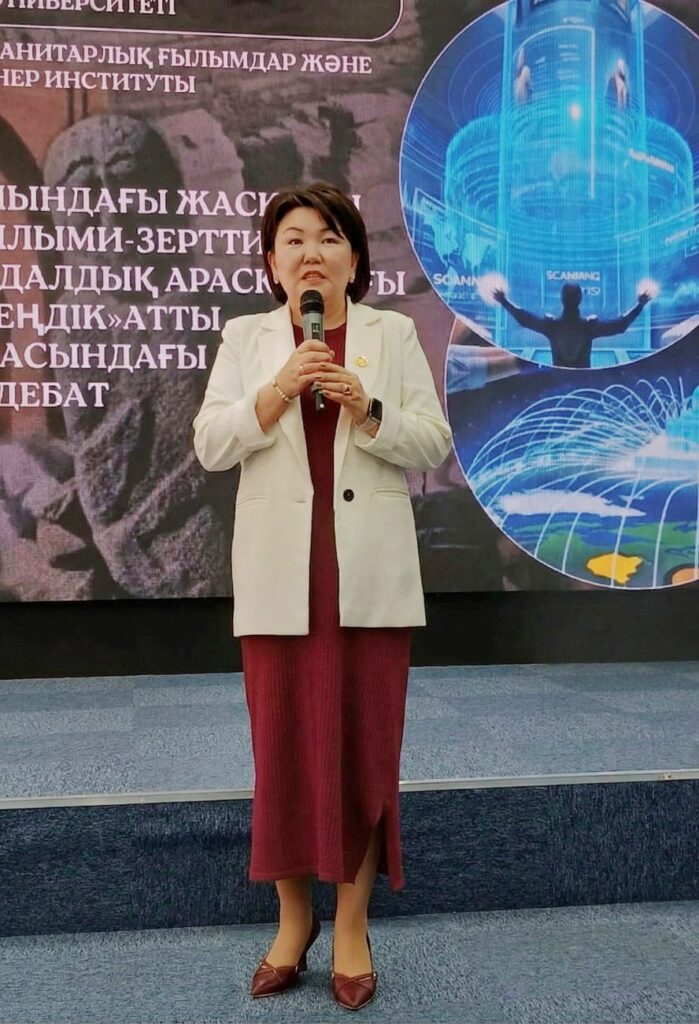 Преподаватели кафедры философии, теории и истории культуры КНУ приняли активное участие в мероприятии в качестве экспертных слушателей. Открывая мероприятие, с приветственной речью к участникам обратилась заведующая кафедрой философии, теории и истории культуры КНУ, доцент А.Т.Качкынова. В своем выступлении она подчеркнула исключительную значимость сохранения гуманитарных основ в эпоху тотальной цифровизации. Она отметила, что стремительное развитие ИИ ставит перед исследователями новые задачи, где на первый план выходит необходимость развития критического мышления. По её словам, именно способность к глубокому анализу, проверке источников и этической оценке данных является тем барьером, который защищает академическую честность от рисков автоматизированного искажения смыслов.