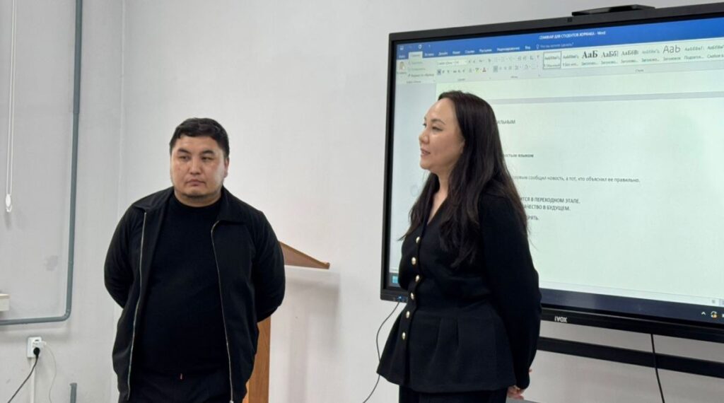 Адилет Темирланов также рассказал студентам о практических аспектах работы журналиста: как искать и проверять информацию, какие источники использовать и какие навыки формируют профессиональную устойчивость в профессии. По его словам, современная журналистика в Кыргызстане находится на переходном этапе, и именно молодое поколение журналистов будет определять её качество в будущем. «Не бойтесь ошибаться. Бойтесь не проверять», — подчеркнул спикер, обращаясь к студентам.