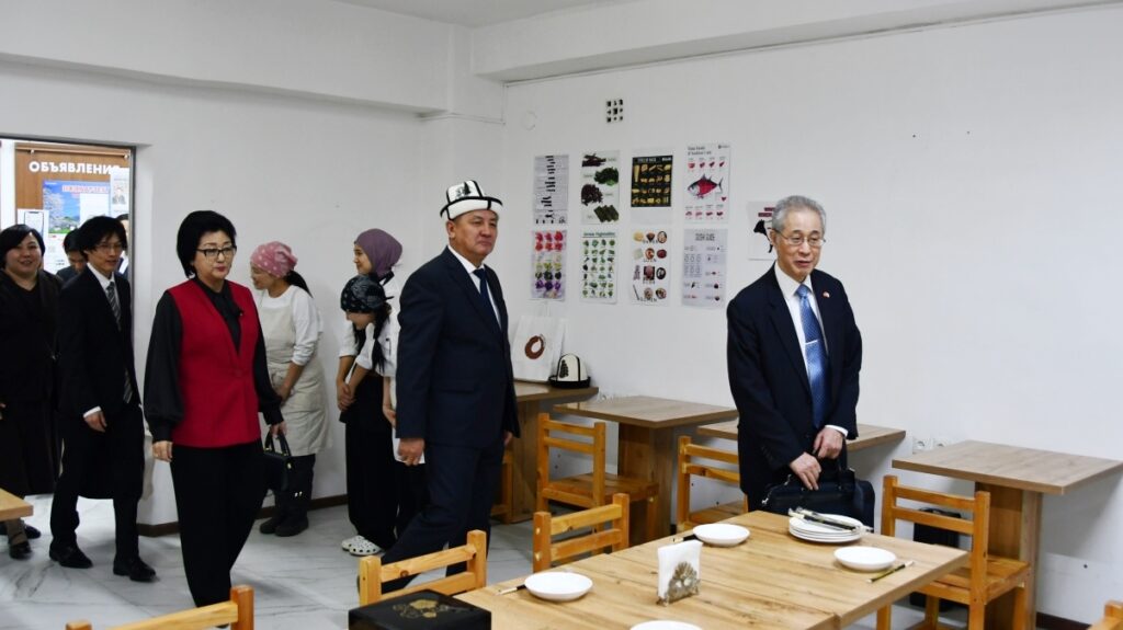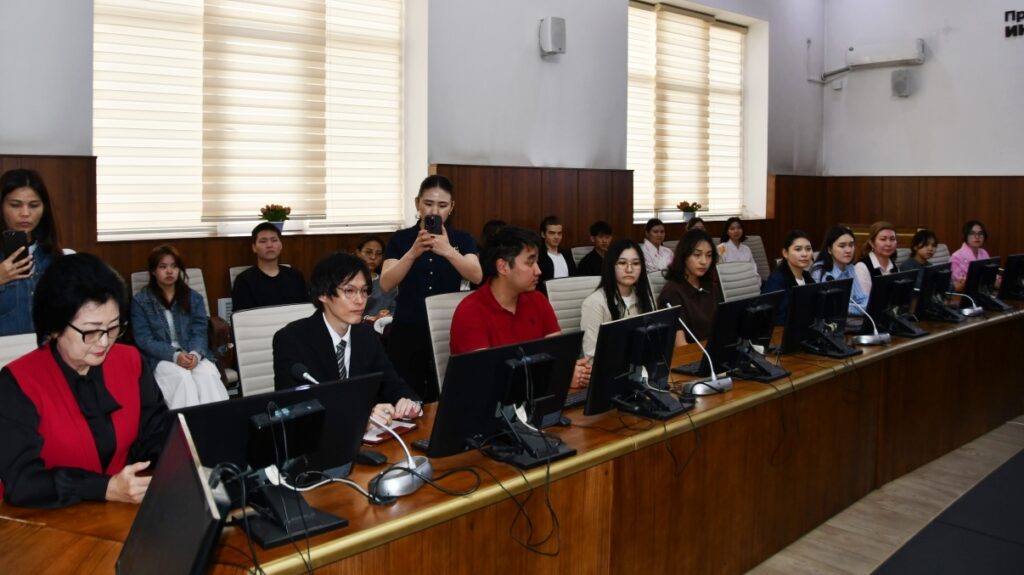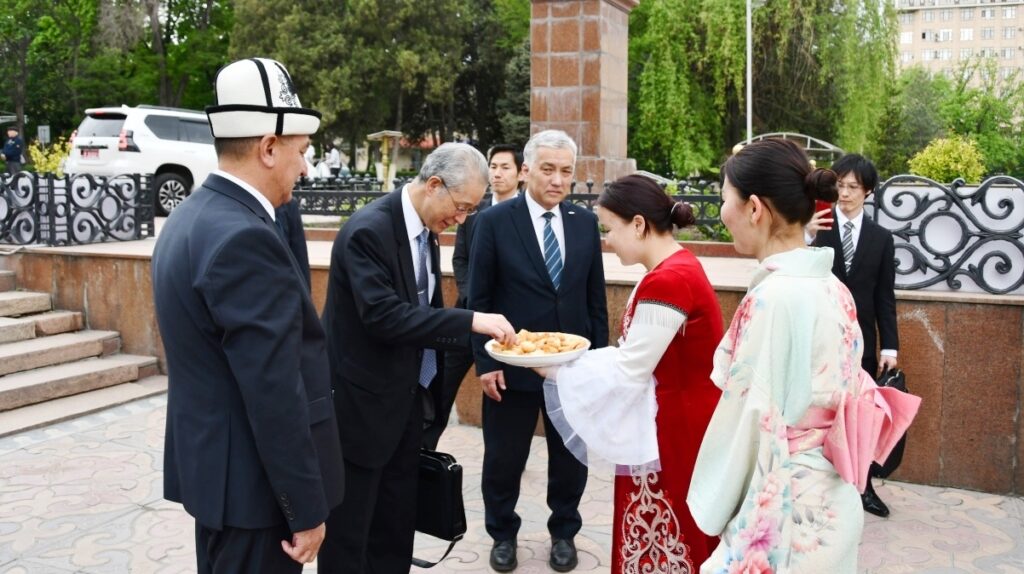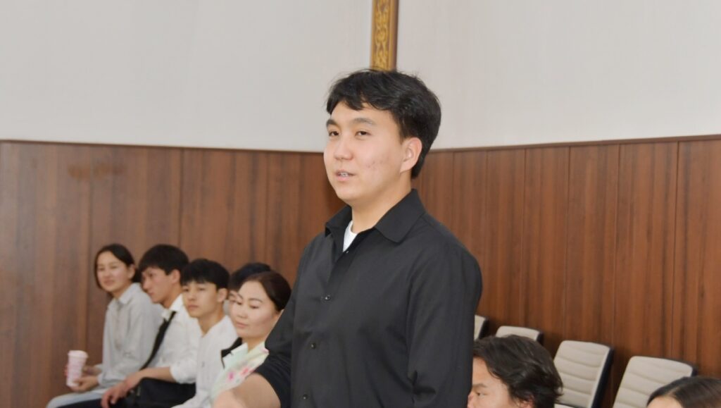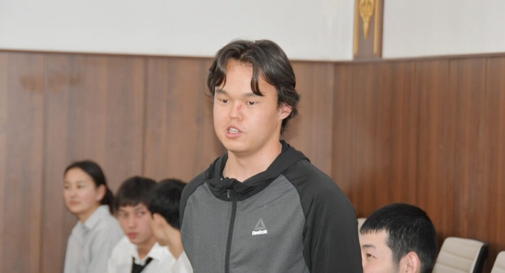 После официальной части, Посол Японии встретился со студентами Кыргызско-японского института и Факультета международных отношений и востоковедения. Они рассказали о свободном выборе предметов, стипендиальных программах и об особенностях японской культуры. Встреча прошла в формате вопросов и ответов.