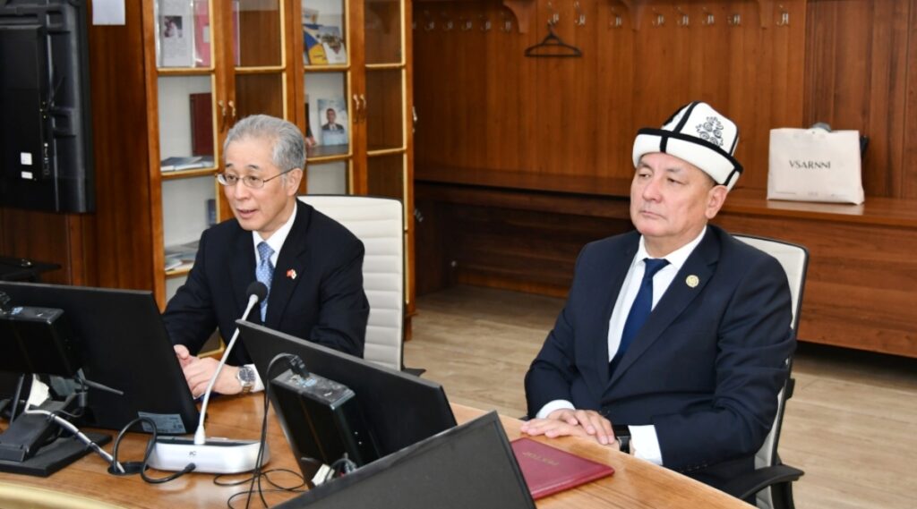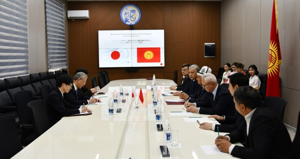 Ректор КНУ поздравил г-на Хирано Рюити с началом дипломатической миссии в Кыргызстане и отметил важность сотрудничества с Кыргызстан и Японии в области образования. Он также проинформировал главу дипломатической миссии Японии о центрах и образовательных программах в КНУ.