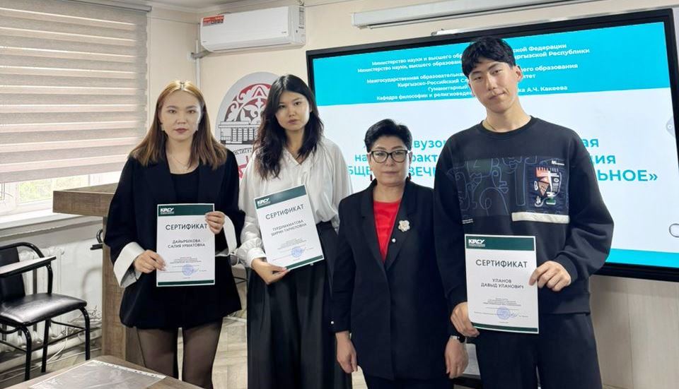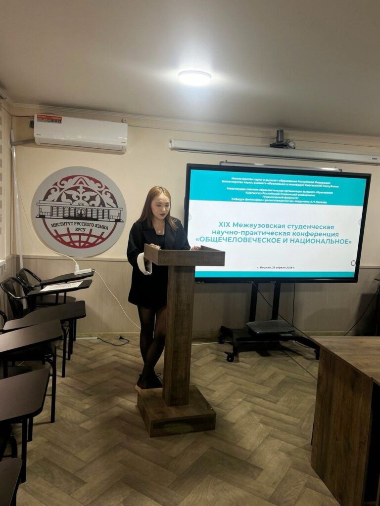 23 апреля 2026 г. студенты кафедры философии, теории и истории культуры Института социально-гуманитарных наук приняли участие в работе XIX межвузовской студенческой научно-практической конференции «Общечеловеческое через национальное». Мероприятие, прошедшее на базе гуманитарного факультета КРСУ им. Б. Н. Ельцина, стало авторитетной площадкой для диалога молодых ученых и ведущих экспертов страны.