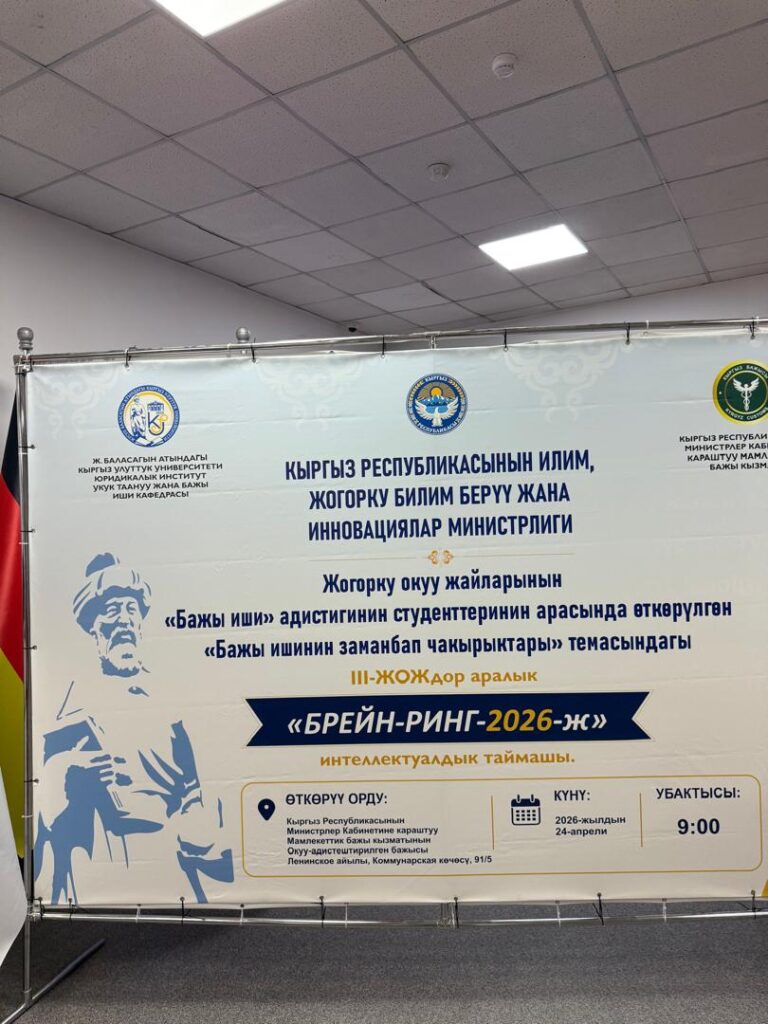 24 апреля 2026 года состоялась ежегодная III Межвузовская студенческая интеллектуальная викторина «Современные вызовы таможенного дела». Организатором мероприятия выступила кафедра «Правоведение и таможенное дело» Юридического института КНУ им. Ж.Баласагына.
