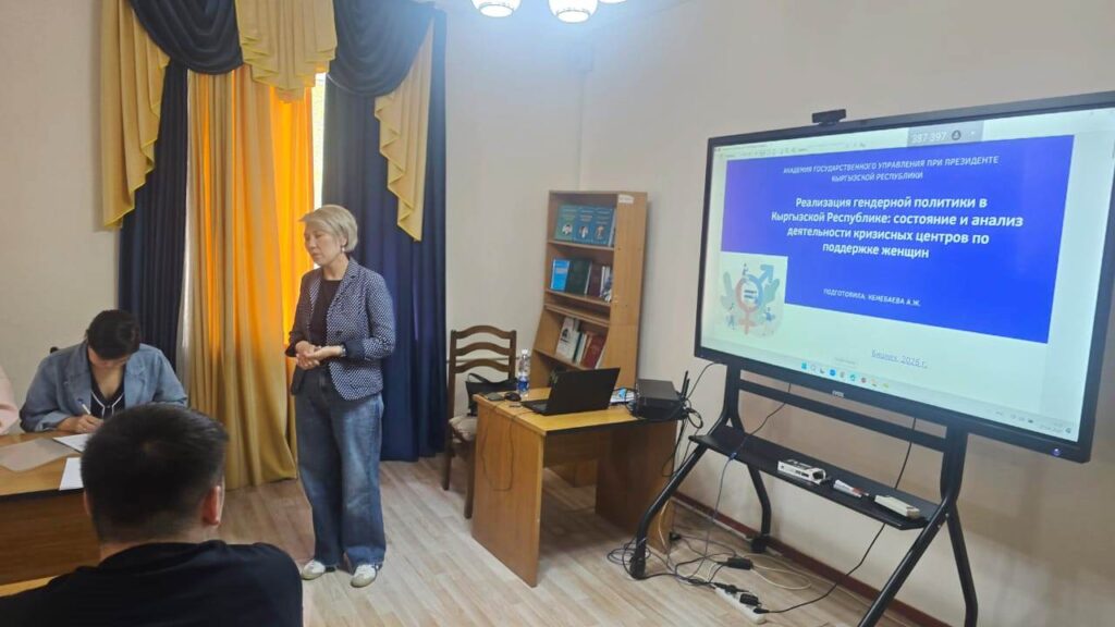 25 апреля 2026 года магистрант Академии государственного управления при Президенте Кыргызской Республики (АГУП КР) Кенебаева Айжан Жоробековна провела лекцию для студентов и профессорско-преподавательского состава программ «Психология» и «Экономика» Института переподготовки и повышения квалификации кадров на тему: «Гендерная политика в Кыргызской Республике, анализ и состояние кризисных центров для женщин».