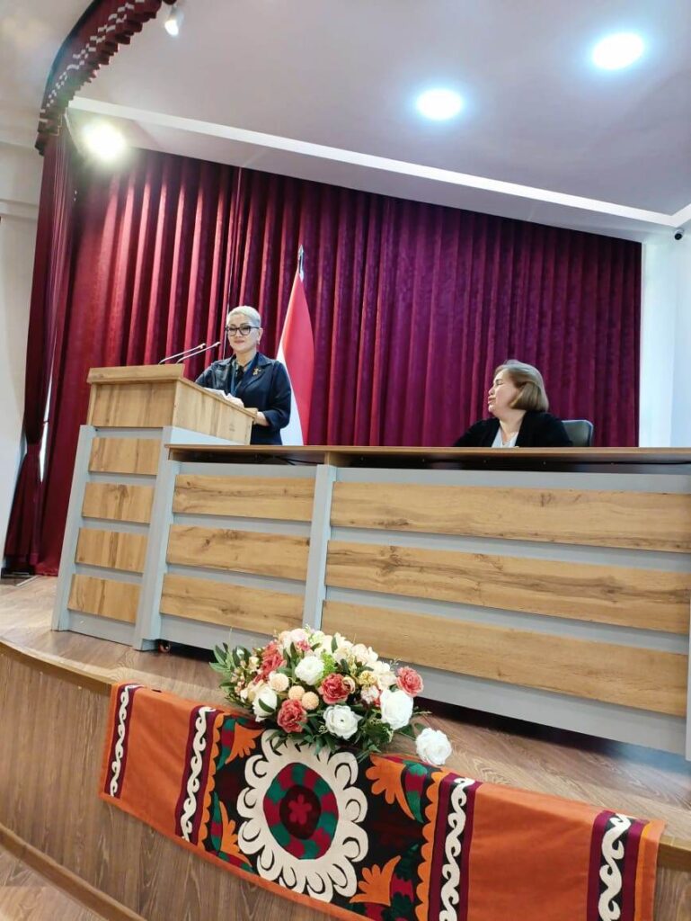 В рамках пленарного заседания выступила старший преподаватель Анна Валерьевна Окулич-Казарина с докладом «Межкультурные прецедентные феномены в творчестве народного поэта Кыргызстана В. И. Шаповалова», который вызвал большой интерес аудитории.